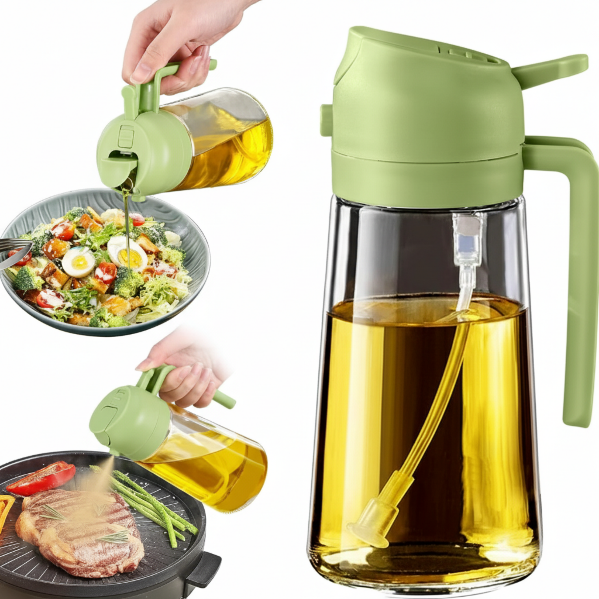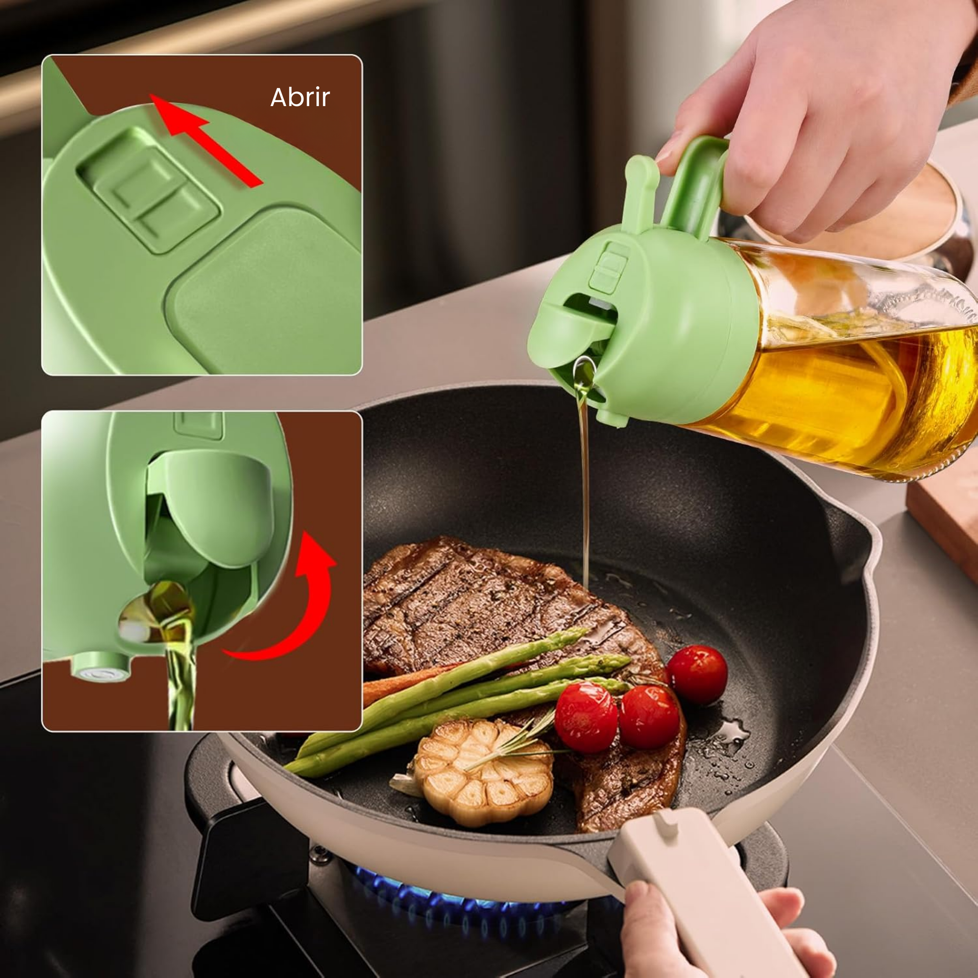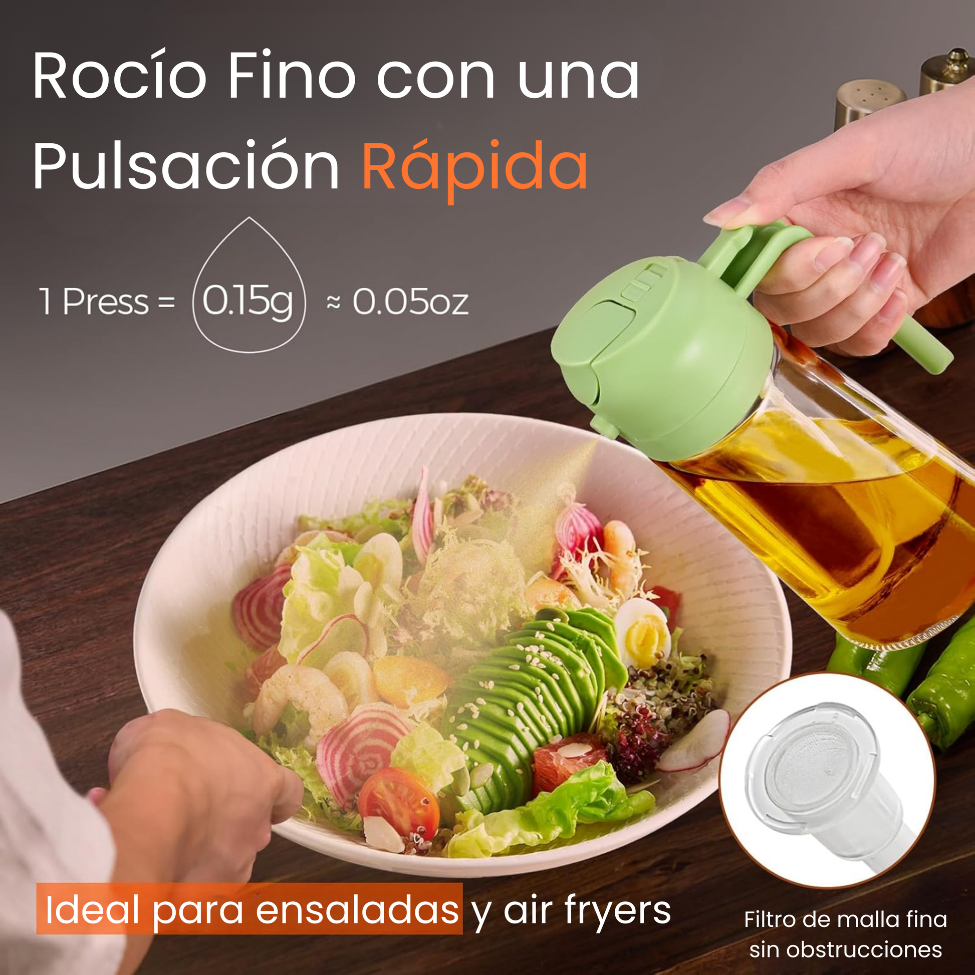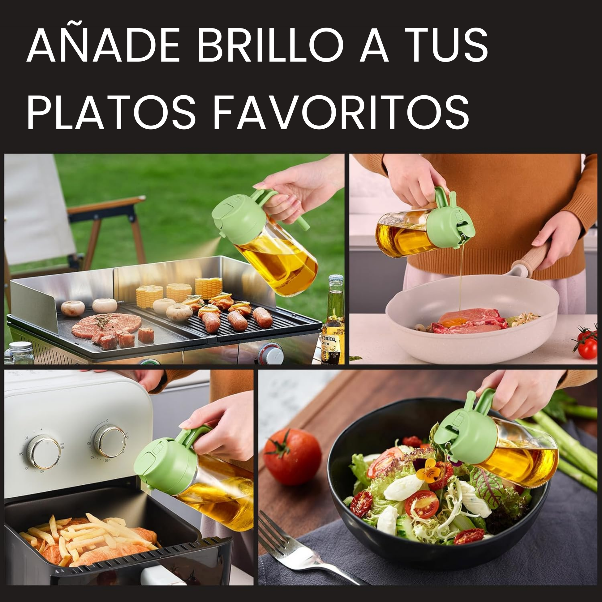 ¿Se te va la mano con el aceite? Con este dispensador 2 en 1 olvídate de comidas grasientas, botellas pegajosas y aerosoles tóxicos. Cocina más rico y saludable con la dosis exacta cada vez.