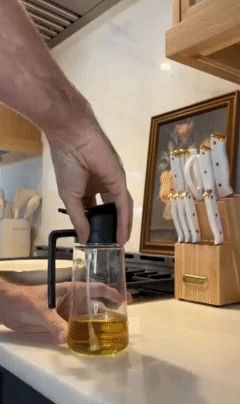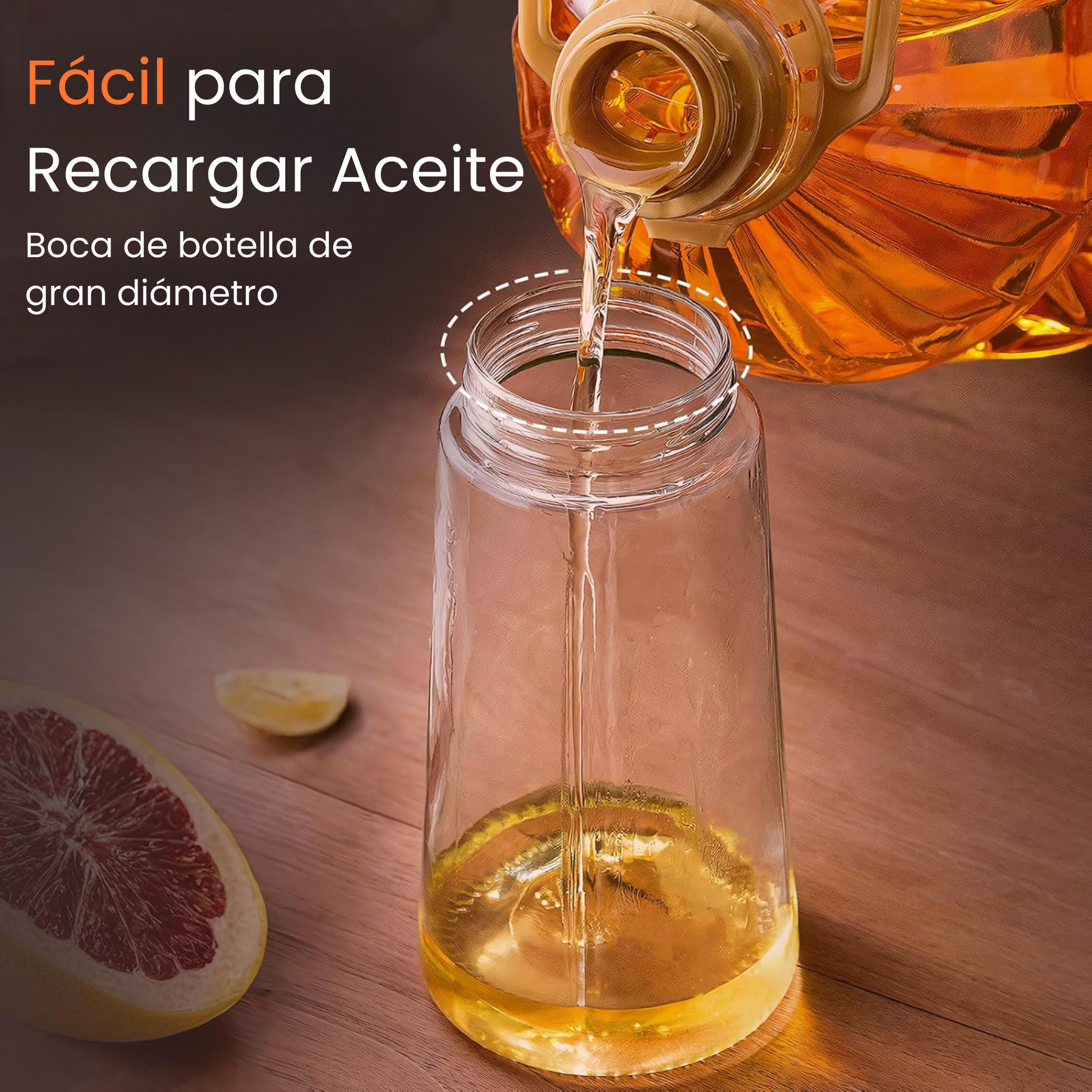 Odiaba cómo quedaban las aceiteras tradicionales: chorreaban por los costados, dejaban todo pegajoso y hasta atraían hormigas. Este dispensador es totalmente distinto. La boquilla no gotea, el vidrio se limpia fácil y mis manos ya no quedan llenas de aceite. Además, con un clic paso de spray a chorro según lo que esté preparando. Lo uso para todo: ensaladas, salteados, la parrilla, incluso para la freidora de aire. Ya no gasto en aerosoles comerciales ni lleno mi cocina de envases. Me encanta porque es limpio, práctico y se ve elegante en la mesa.