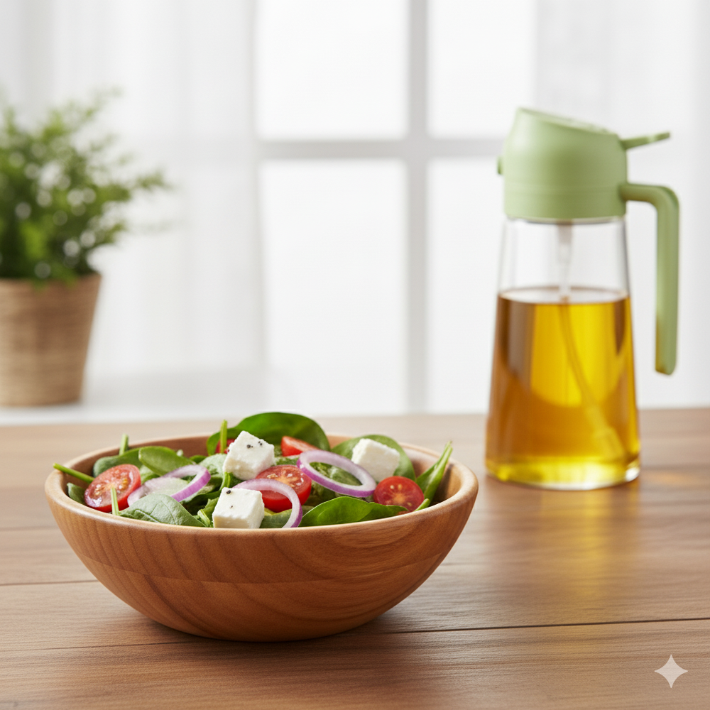 Lo compré porque quería bajar un poco las calorías sin dejar de cocinar rico. Con el spray uso solo lo necesario para mis ensaladas y para hornear verduras, y con el chorro preparo guisos o fideos sin ensuciar. Es increíble la diferencia en la cocina: menos aceite desperdiciado, más orden y nada de botellas pegajosas. Además, me gusta que es reutilizable y ecológico, no como los aerosoles que traen químicos y generan basura. Ahora siento que tengo el control y que mi cocina es más práctica y saludable.